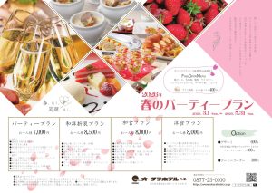 2026.02.04 春のパーティープランのご案内 春のパーティープランのご案内 期間:2026年3月1日~5月31日まで 画像をクリックしてご覧ください 宴会予約受付:0877-23-0100 一覧に戻る